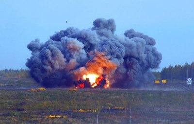 Подрыв неуправляемых ракет у цели. Фото НПК "Уралвагонзавод" / uvz.ru