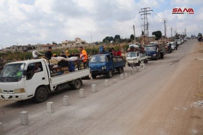 Сирия, провинция Дараа — Местные жители возвращаются в свои дома в населенных пунктах Сахим аль-Голан, Джлейн и Хайт, в том Дараа, которые несколькими днями ранее были освобождены от боевиков запрещенной в России организации «Исламское Государство».