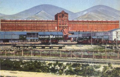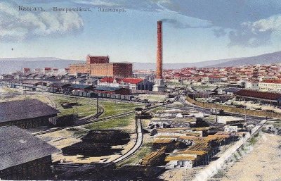 Железнодорожный вокзал и на заднем плане элеватор во время спуска с гор легендарной "боры"