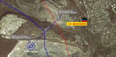 В диспетчерской добавили, что в результате обстрела машина загорелась. Как добавили в представительстве ДНР в СЦКК, по Докучаевску ориентировочно в 10:10 утра была выпущена одна противотанковая ракета (ПТУР).