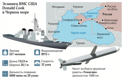— Угрозы американские корабли в Черном море для нас не представляют. Но в последнее время интенсивность их маневров возросла. Корабли Черноморского флота контролируют их перемещения, находясь в пределах видимости, — пояснил Дмитрий Болтенков.