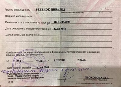 Женщина также предоставила справки, подтверждающие инвалидность сына.