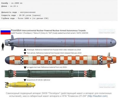 1 марта 2018 г. впервые обнародована информация о создании в России комплекса «Посейдон». По информации СМИ в 2018 г. начаты полигонные испытания самоходных подводных аппаратов 2М39.