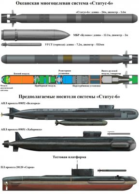Для испытаний подводных беспилотников проекта «Статус-6» использовалась и дизельная лодка «Саров» (проект 20120), которая также была переоборудована для транспортировки роботизированных комплексов. Именно на «Сарове» испытывались мини-подлодки для АПЛ пятого поколения, спроектированные в центре имени Макеева совместно с ЦКБ «Рубин». Проект носит название «Скиф». Его предназначение, как и у «Посейдона» – нанесение неожиданных ударов из глубин океана. Разница в дальности поражения – «Скиф», отлежавшись до поры до времени на дне океана, бьет по команде на 300 километров, «Посейдон» может незаметно «шляться» в толще воды и выбирать цель на дальности в 10 000 километров (Путин сказал, что неограниченно).