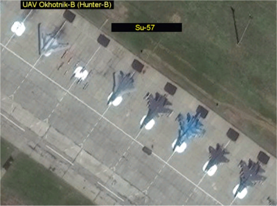Во время посещения президентом Ахтубинска на аэродроме были выставлены перспективные образцы вооружения, в числе которых ударный беспилотный летательный аппарат разработанный компанией «Сухой» по программе «Охотник-Б» С-70, многоцелевой истребитель пятого поколения Су-57 и номенклатура вооружения к ним. Эта демонстрация, а так же другие истребители, в том числе Су-57 попала в кадр спутниковых снимков опубликованных пользователем rambo54. По снимку можно сказать, что «Охотник» получил собственный камуфляж и теперь его испытания, в том числе возможно и лётные, продолжатся в Ахтубинске.