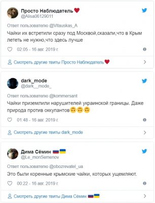 Однако для некоторых людей произошедшее 15 августа с российским самолётом стало очередным поводом для злорадства. Украинские интернет-пользователи не могли пропустить тот факт, что самолёт «Уральских авиалиний» летел не куда-нибудь, а в Крым, в Симферополь. Блогеры из Незалежной назвали героями не пилотов A321, а… чаек, которые пожертвовали собой ради защиты Украины. «Даже чайки против «Раши»», – пишут в Сети. Некоторые пытались высмеять многочисленные фотографии севшего на брюхо самолёта: «Рождённый ползать летать не может».