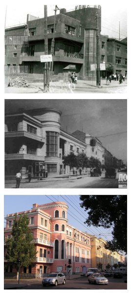 15. Если взглянуть на другую сторону улицы, то мы увидим «дом нарпита». Здание было построено одновременно с кинотеатром им. Шевченко для работников Народного комиссариата пищевой промышленности. Дом состоял из административной и жилой части. В период оккупации 1941-43 гг. в нем располагалась немецкая военная комендатура. На фото видим существовавшее когда-то кафе «Театральное».