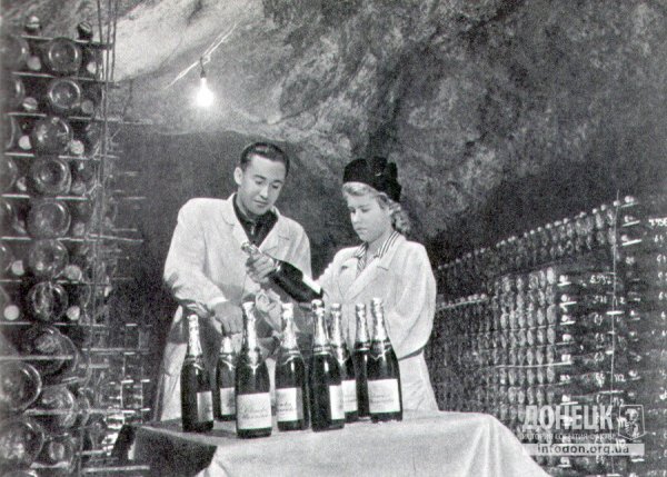 На Артемовском заводе шампанских вин заканчивается подготовка к передаче в торговую сеть первой партии продукции. В контрольном цехе уже находятся около семи тысяч бутылок «Советского шампанского» – полусухого, полусладкого и сладкого. После трехлетней выдержки и проведения ряда сложных технологических операций вино дозируется ликером для придания ему определенной сладости. Через месяц, в течении которого бутылки с вином выдерживают в контрольном цехе, они подлежат окончательной отделке: на них наклеивают этикетки, кольеретки. Пробки и шейки бутылок покрывают серебристой фольгой. На этикетках появится надпись: «Артемовский завод шампанских вин. 1954 год.