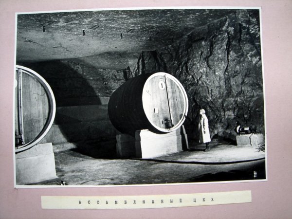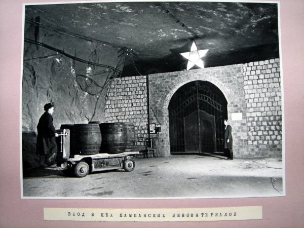Вахтер распахнул металлические ворота. Перед нами — широким въезд, напоминающий железнодорожный тоннель. Почти сразу же меркнет дневной свет, но открывается зрелище, ради которого стоит совершить это подземное путешествие. Магистраль размером с добрый столичный проспект, длинный ряд электрических фонарей, теряющихся где-то далеко в темноте, и — огни, огни, огни. Это идут навстречу машины, груженные ящиками с шампанским. Завтра-послезавтра шампанское появится в магазинах.