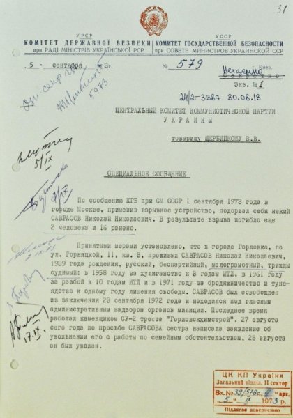Специальное сообщение от 5 сентября 1973 г. №579 в ЦК КП Украины тов. Щербицкому В.В. Источник — telegram-канал kgbfiles_rus