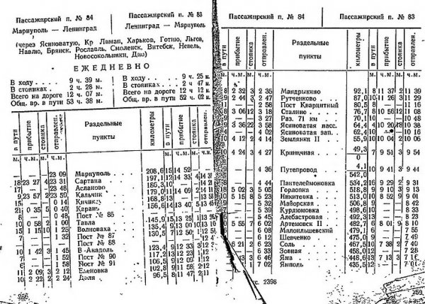 Служебное расписание поезда Мариуполь – Ленинград на 1959 год Полное расписание – здесь