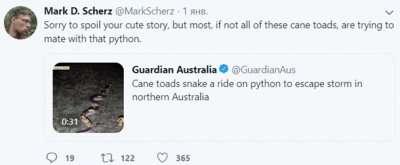 "Жаль портить ми-мишную историю, но почти все, если не все из этих камышовых жаб пытаются спариться с этим питоном", - пишет ученый.