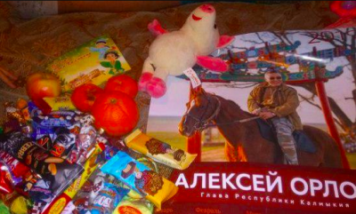 Детям чиновников Калмыкии на "главной елке" вручили новогодние подарки, в составе которых обнаружились подгнившие мандарины и плакат с восседающим на коне главой региона Алексеем Орловым.