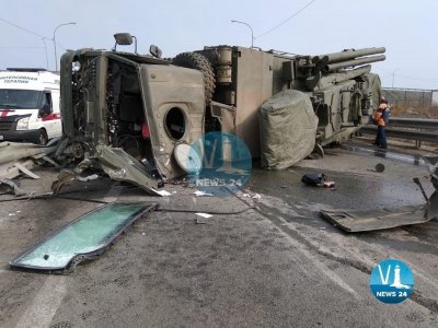 Как сообщил РИА Новости начальник отдела информационного обеспечения пресс-службы ВВО по Тихоокеанскому флоту Николай Воскресенский, военнослужащие во время инцидента не пострадали. На месте работает наряд ДПС, а также автокран. Причина аварии устанавливается.