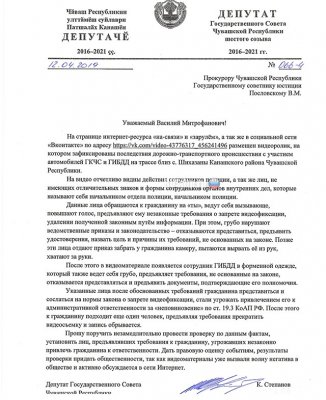 В пресс-службе МВД по Чувашии изданию сообщили, что по инциденту с очевидцем назначена служебная проверка, по результатам которой действиям сотрудников полиции будет дана правовая оценка. Кроме того, запрос на имя прокурора республики Василия Пословского направил депутат госсовета Чувашии Константин Степанов. Служебная проверка также будет проведена по факту самого ДТП.