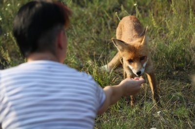 Туристы кормят лису в зоне отчуждения ЧАЭС / Getty