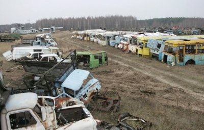 Кладбище техники, используемой при ликвидации аварии на ЧАЭС и эвакуации населения Припяти/ EPA